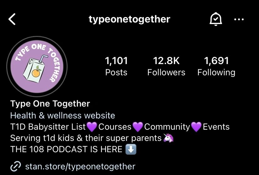 Type One Together has to be our number one Instagram page. The founder, Raquel, has had Type One since early on in childhood. A frequent poster on the Type One Together page and her own page (typeoneday), she shares a lot of insight into the day to day with diabetes, as well as tips and tricks. She is the one who taught us that you can use a test strip to remove the transmitter from a Dexcom G6 sensor! Another frequent poster on the page is Amanda, who has a toddler with Type One. They post frequent community builder posts and also do a lot of in person events. There is also “The Grandparents Course” that helps the grandparents of kids with Type One learn the ins and outs of the condition independently, taking the pressure off the parents. Another popular program they offer is the “Automode Masterclass” to teach you how to use an insulin pump so that you can work with it to manage sugars, not against it. You can also get a Diabuddy from them, a stuffed animal that has a pump and CGM.